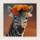 zebra branca e negra vestindo um halo de flores laranja em seu cabelo. Arte gerada por Ai por minx267