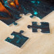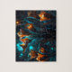 Flores da Natureza Selvagens Vivas Exóticas na quebra-cabeça de serra de Lua. Este trabalho de arte digital representa uma cena mesmerizante de um jardim mágico banhado no brilho suave à luz da lua. O foco está em um aglomerado de flores laranja vívidas, possivelmente zínnias ou margaridas, cercado por um monte de moscas luminosas. Uma misteriosa luz etérea que aumenta o ambiente encantador da cena. Ao fundo, mais moscas voam mais entre faíscas e órbitas brilhantes, criando um sentido de profundidade e maravilha. A paleta de cores de ricos azuis e laranjas quentes, junto com os efeitos cintilantes, evoca uma atmosfera sonhadora, de outro mundo, capturando a beleza e a tranquilidade da natureza à noite