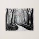 Quebra-cabeça Floresta Silhueta Negra e Branca de Folhas Roxas