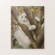Quebra-cabeça Fluffy Cat com olhos azuis em uma árvore