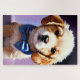 Quebra-cabeça Fluffy Puppy Adorável w Arco azul