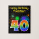 Este divertimento, características de design vibrantes do quebra-cabeça um teste padrão colorido inspirado por fogos-de-artifício comemorativos, junto com o número "40" tendo um arco-íris colorido inspirou o teste padrão do inclinação, em um fundo colorido preto. Igualmente caracteriza um nome e uma mensagem feitos sob encomenda do evento, tal como um cumprimento do aniversário. Um quebra-cabeça como este pôde ser uma maneira do divertimento de enviar uma mensagem do aniversário para comemorar alguém quadragésimo aniversário. [~Z0000329]