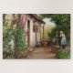 Uma cena rural pacífica se desenrola fora de uma fazenda dinamarquesa, onde a luz da tarde suave toca as paredes de madeira vestidas e o jardim florescente. Hans Andersen Brendekilde captura a simplicidade do dia a dia com calor e autenticidade, evocando o ritmo da vida no campo através de delicada escova e tons naturais gentis.