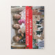 O design oferece espaço para quatro fotos como imagem principal. Uma faixa vermelha com uma borda branca corre através do centro como fundo para o texto personalizável, "Feliz Natal 2025, Senhora!" Excelente presente de Natal para um avô, tia ou qualquer um. Todo texto é personalizável.
