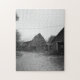 Esta quebra-cabeça apresenta uma foto de um celeiro antigo em preto e branco.