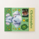 30 peças de um quebra-cabeça para crianças. Com um elefante giro, com estrelas e corações amorosos. Adicione um nome, inicial e uma foto. Esquema de cores: verde e amarelo Ideia de presente para crianças.