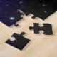 Uma quebra-cabeça celestial legal para sua festa de aniversário temática estrela. Uma bonito foto do espaço preto, azul, roxo e branco. Obrigados do Galaxy Cluster MACS J0717 para o programa NASA e Hubble.