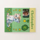 30 peças de um quebra-cabeça para crianças. Com um leopardo fofo, com estrelas e corações amorosos. Adicione um nome, inicial e uma foto. Esquema de cores: verde e amarelo Ideia de presente para crianças.