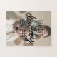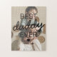 Quebra-cabeça de serra personalizada com uma foto para você substituir por sua, o ditado bonito "melhor pai de sempre", um coração, e os nomes das crianças.