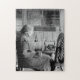velha mulher usando a roda giratória 1930S ANTIQUE quebra-cabeça de quebra-cabeça preto e branco FOTOGRAFIA