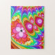 Este quebra-cabeça fractal com aspecto fratural tem formas legal em rosa claro, vermelho, laranja, amarelo, azul, verde, roxo e preto. Faz um presente excelente para amantes de arte fractal!