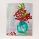 De uma pintura original em aquarela da artista Sacha Grossel de frutas vermelhas do Natal em um vaso turquesa natureza-morta arte fina. Cores vermelhas e verdes do Natal esta bela obra de arte colorida e alegre faz um presente lindo para qualquer época do ano.