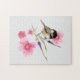 Bela ave-de-bico-de-cabeça-branca pintada em aquarela com flores rosa e roxo pintadas pela artista Jennifer Steffen. A arte está disponível impressa em uma variedade de produtos, incluindo canecas, azulejos, posters e telas de tela, sacos de tote, quebra-cabeça, cartões de saudação, decoração domiciliar e muito mais! Design do Emporium de Jenn.