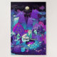 Uma garota de cabelo branco está sentada na floresta mágica e tocando violão à noite estrelada sob a lua. Ela está cercada por lobos fofos e animais e plantas mágicas. Eu a chamei de Insônia. O desenho é feito com tinta e colorida digitalmente em cores psicodélicas.