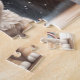 Quebra-cabeça bonitinho de serra com um adorável gatinho fofo na chuva debaixo do guarda-chuva. Faz um gafanhoto de estoque fofo personalizado ou presente de aniversário para crianças e todos os amantes de gatos. Vem com uma caixa de carregar de cartão com uma imagem quebra-cabeça impressa na tampa! Personalize facilmente o texto ou deixe-o vazio. - Kate Eden Art