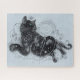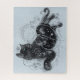 Um gato negro cósmico dança entre as estrelas, caindo por uma galáxia sonhadora em refinados detalhes de caneta e tinta. Esta quebra-cabeça celestial é perfeita para estargazistas, amantes de gatos, e qualquer um que desfrute de um toque de mistério com seu tempo de brincadeira. Arte © Paulina Fae.
