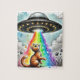 Um gatinho de gengibre bonitinho dá as boas vindas a um OVNI que beija feixes de aquarela em um campo de flores silvestres fantasia arte gerada por IA
