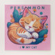 Quem ama gatos ficará encantado com esse gatinho de desenho animado. O gato que dorme numa cama de folhagem e flores é colorido em pastéis brilhantes. A cor de fundo rosa pode ser alterada para qualquer cor desejada na ferramenta design do Zazzle. Adicione qualquer texto dentro da ferramenta também.
