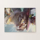 Quebra-cabeça com dois gatinhos bonitos em um mundo de fantasia de viagem ficcional, com (opcional) seu texto personalizado.