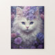 Quebra-cabeça Gato Branco Bonito com Flores, Arte Fantástica