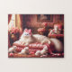 Quebra-cabeça Gato Branco & Gatinhos Rosa Rosa Família Felina Ch