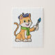 Quebra-cabeça Gato como Pintor com Pincel e Escarpo