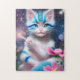 Quebra-cabeça Gato de gato branco Kawaii listrado, rosa e azul