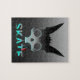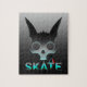 Skull Grafite Skater Cat, O super herói urbano malicioso, Ska Punk legal cat Ferzio, no topo de um cartaz brilhante de Skate, pintando um grafite de crânio de gato.