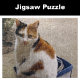 Quebra-cabeça Gato do Calico sentado numa caixa no jardim