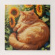 Quebra-cabeça Gato Laranja Gordo Sonolento com Girassóis