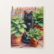 Quebra-cabeça Gato Preto Sentado no Jardim de Hosta