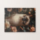 Quebra-cabeça Gato Siamês Cercado Por Flores Rosa Escamosas