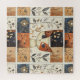 O elegante padrão floral de gatos bonitinhos modernos e coloridos em tons de laranja, preto e bege no estilo Art Nouveau.