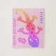 Gecko Rosa, Gelada, Gizard, Namorada, Aniversário, Quebra-cabeça. Personalize o quebra-cabeça com seu nome e sua idade. presente de aniversário divertido para uma garota.