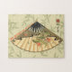 Quebra-cabeça Geisha Fan com Folhas e Impressão Floral