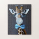 Quebra-cabeça Girafa vestindo óculos, arco gravata soprando goma