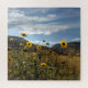 Esta divertida quebra-cabeça de serra mostra uma bela foto de girassóis selvagens com céu azul acima e colinas rolantes à distância. Foto tirada fora de Morrison, Colorado.