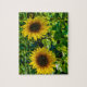 Os girassóis gêmeos no campo ensolarado quente são um desafio especial que aparece no quebra-cabeça divertido!