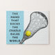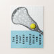 Quebra-cabeça de esporte feminino de lacrosse com uma citação criativa, lax stick e bola.