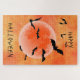 Globo de laranja moderno e morcegos negros. O fundo é laranja de textura