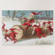 Natais vintages engraçados ilustram gnomos brancos barbudos vestidos como Papais noeis deslizando em um tronco na neve. Da Divisão de Arte, Impressões e Fotografias de Miriam e Ira D. Wallach: Coleção de Imagens publicada por L. Pitar & Co.