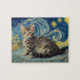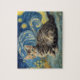 Gato Bonito com Estilo da Noite Estelar Van Gogh num mundo de fantasia, estilo de arte de fantasia para o quarto das crianças, quarto das raparigas, gatinho, design de gatinho fofo,