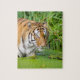 Quebra-cabeça Grande Tigre Nadando com Folhagem Verde