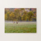 Quebra-cabeça de Jigserra com um casal de Elk pastando um campo em uma fria manhã de outono, com uma névoa persistente. O grande alce do touro come um pouco de grama enquanto o alce da vaca fêmea olha. Isto é em Boxley Valley, Arkansas, EUA. Procurando mais produtos? Visite minha loja: http://www.zazzle.com/timelessmomentsphtgy Foto tirada por Jennifer White com Fotografia Moments Eterno. Todas as imagens são protegidas por direitos autorais.