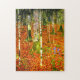 Quebra-cabeça com a pintura Farmhouse de Gustav Klimt com Birch Trees (1903). Uma paisagem autóctone de folhas de laranja numa floresta de pássaros com lindas flores azuis. Um presente maravilhoso para fãs de Arte Nouveau e de Arte Austríaca.