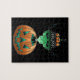 Halloween Horror Punk pop cultura fantasia arte verde zombie monstro verde com Jack o Lanterns, abóboras e gato preto vestindo uma máscara do crânio.
