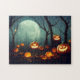 Quebra-cabeça Halloween Kürbisse em einem Wald bei Vollmond.