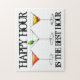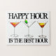 Puzzle design features an original marker illustration of classic martini, Manhattan and cosmopolitan cocktails, with HAPPY HOUR IS THE BEST HOUR in a fun font.