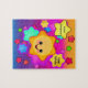 This beautiful and pretty puzzle featuring a very cute sun with a happy smile makes a classic personal gift. The name can be changed with our template as well as the birthday greeting. The colours are in vibrant rainbow hues in magenta pink, lavender purple, sunset orange and sky blue. Meanwhile the stars add twinkling delight for kids of all ages. So make an impression with this elegant fun sunshine!