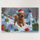 Quebra-cabeça Havanês correndo em neve com chapéu de Natal